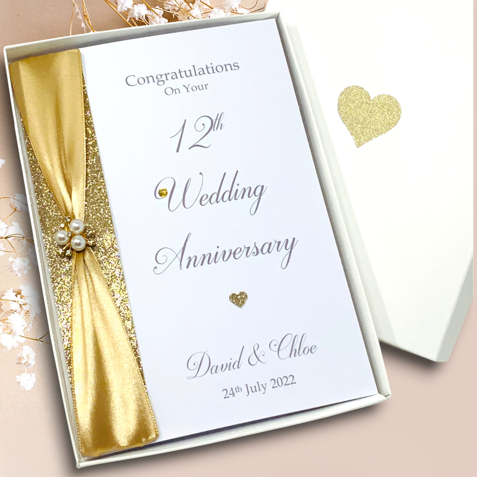 12th Wedding Anniversary Personalised Handmade Luxury Card