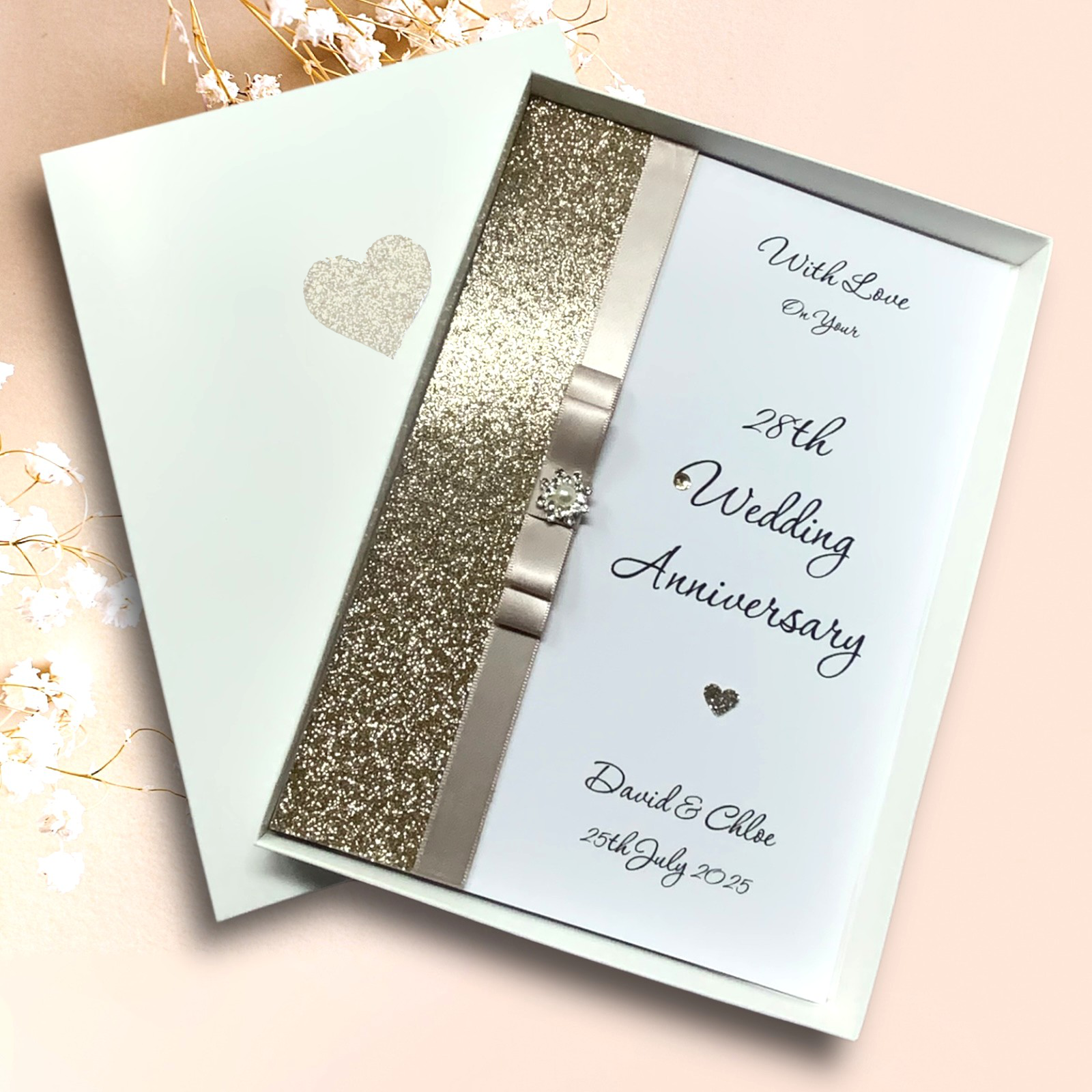 28th Wedding Anniversary Personalised Handmade Luxury Card