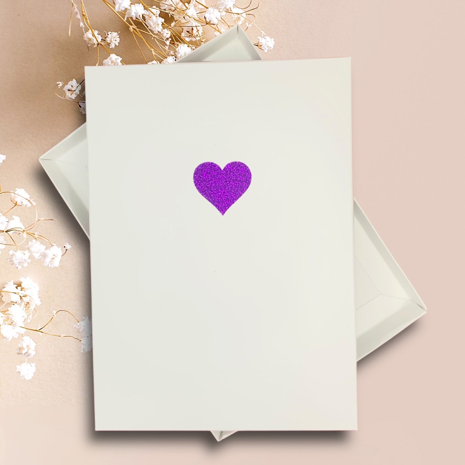 • Load image into Gallery viewer, a white card with a purple heart symbol on it, placed on a light-colored surface.