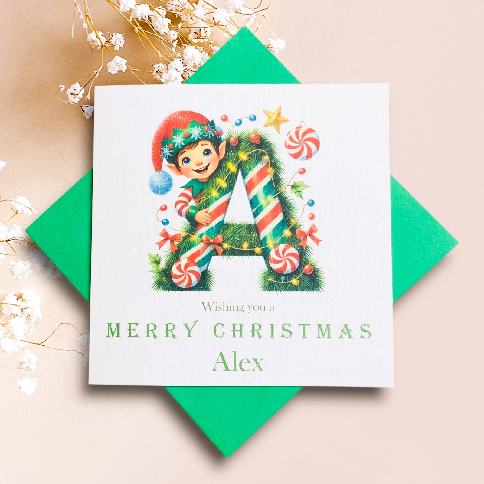 Elf Personalised Handmade Luxury Christmas Card